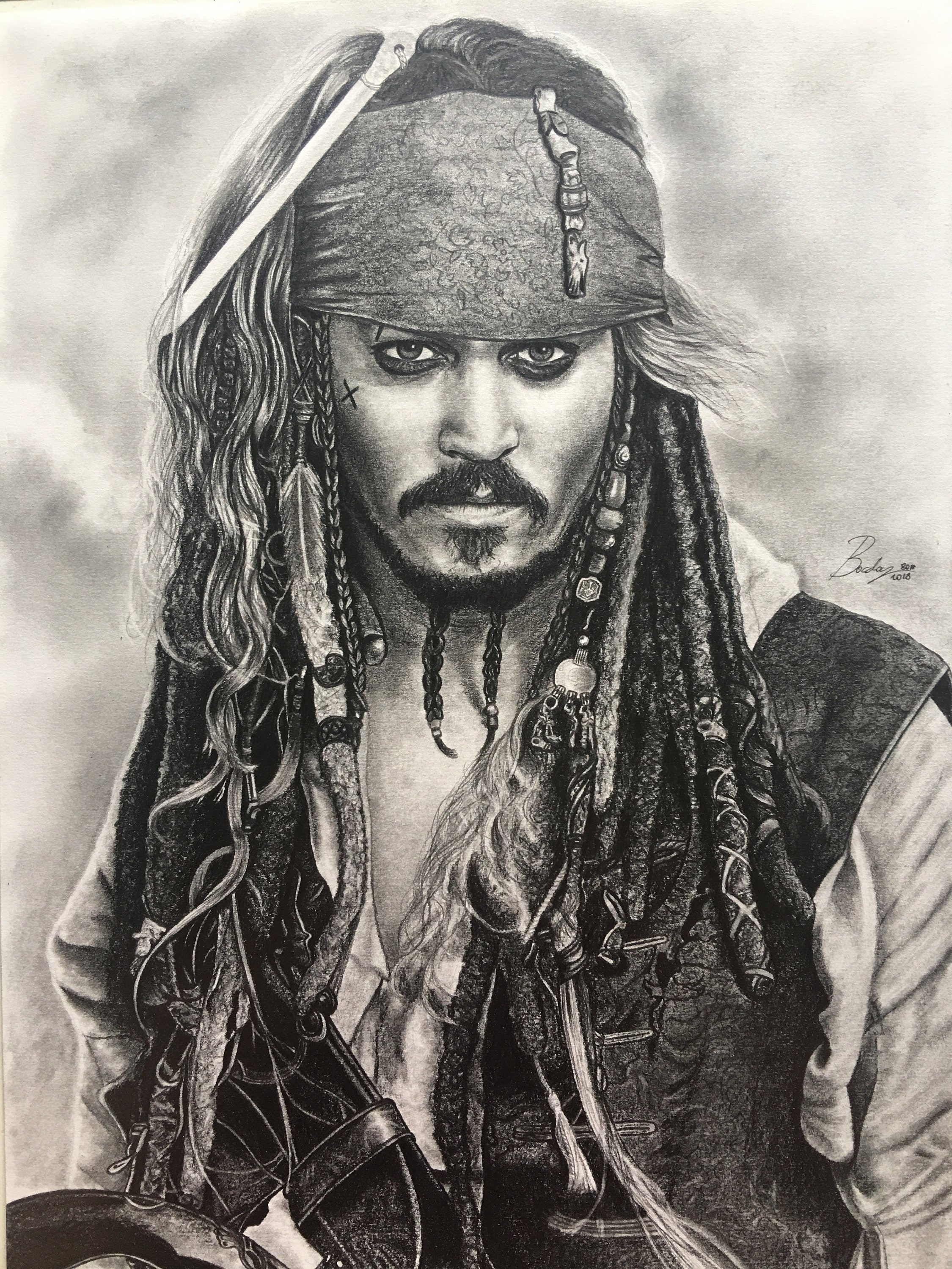 Original Pencil Portrait Of Jack Sparrow From The Film Pirates Etsy Uk